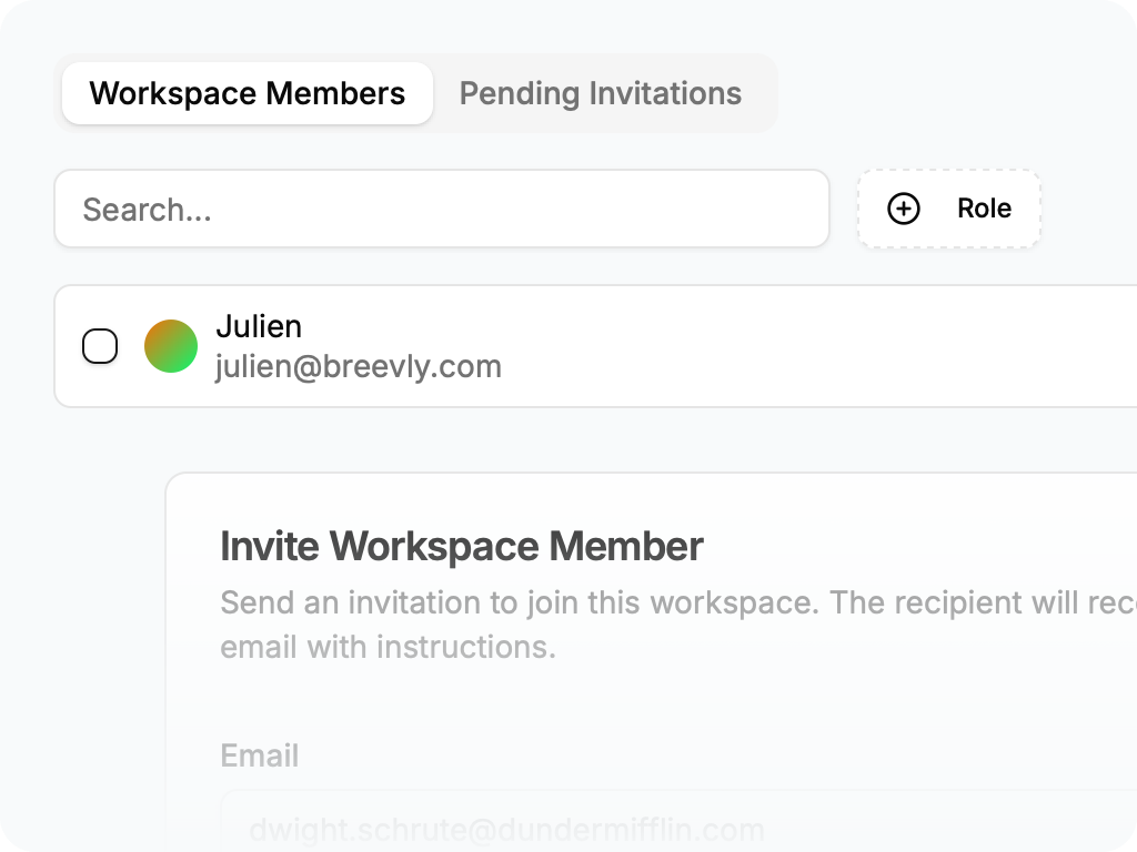 Invite teammates, manage permissions, and work together inside shared workspaces. Perfect for teams that care about consistency and control.