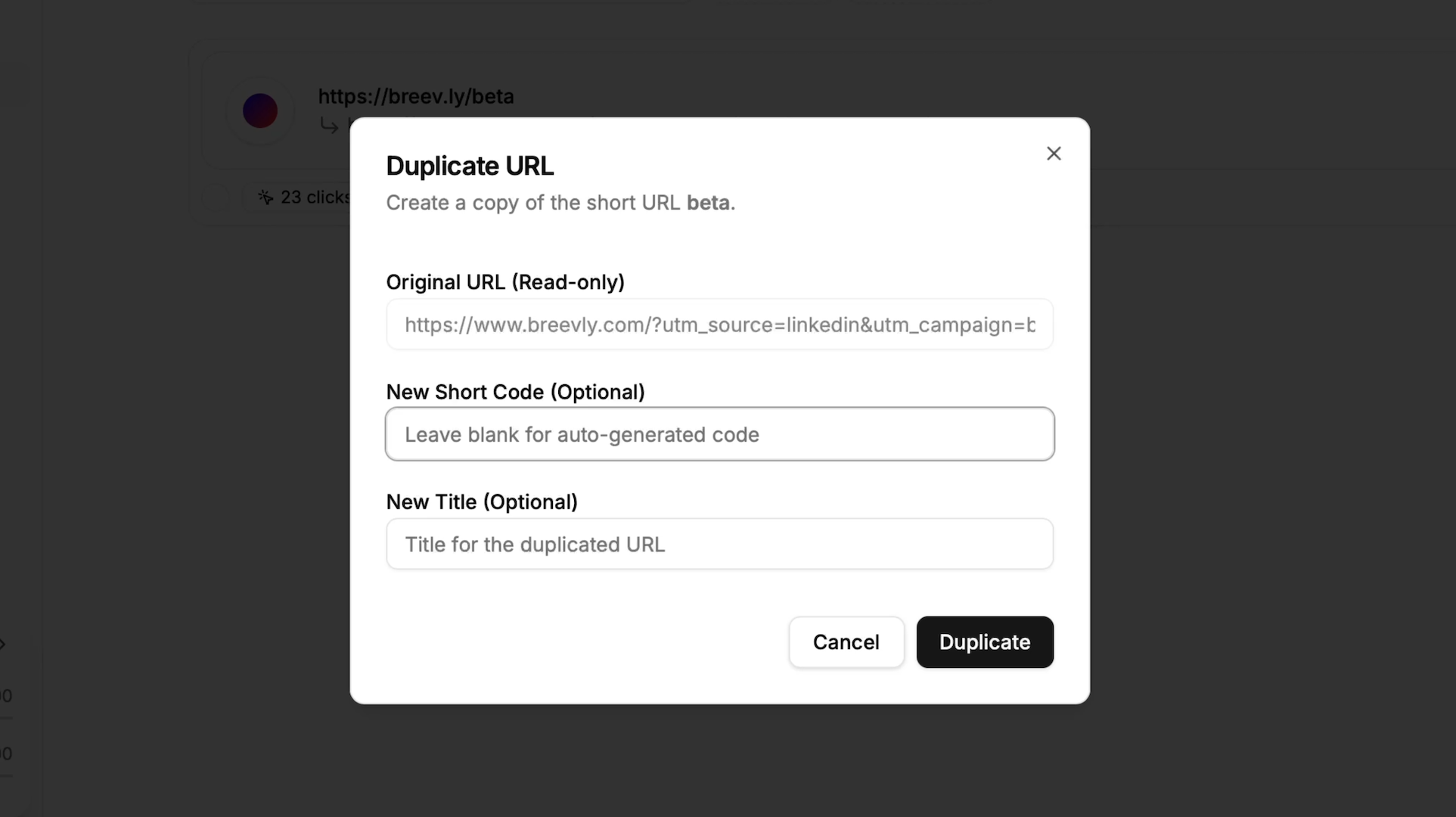 You can either choose a custom slug for the new short link yourself, or let the system generate one automatically when duplicating.