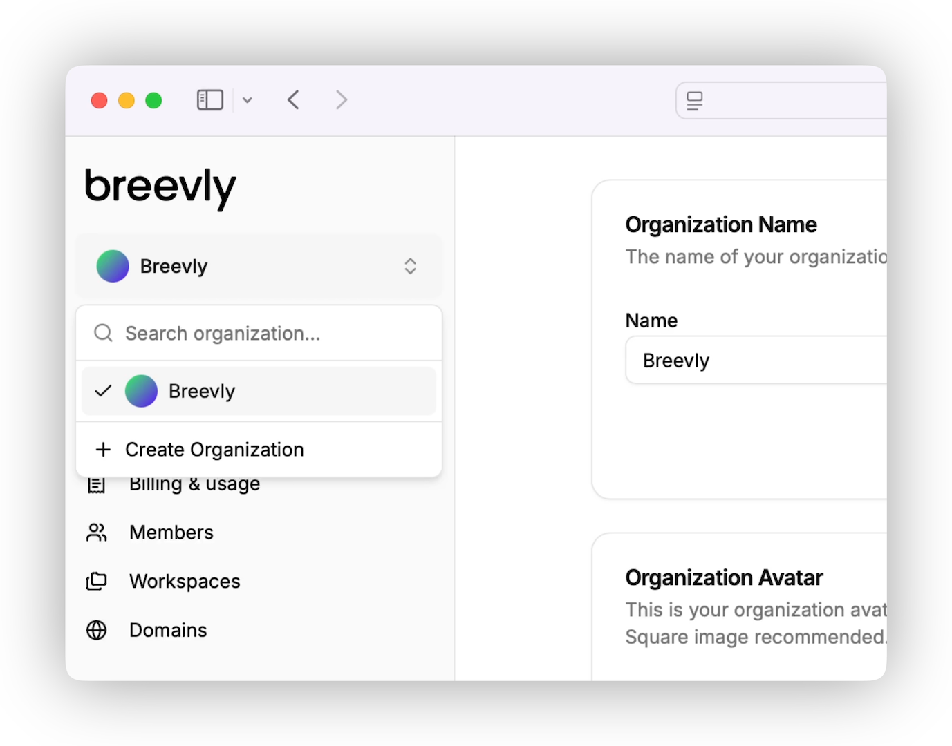 You’ll see a list of organizations you’re a member of. Click the name of the organization you want to switch to. You also are able to search if you belong to a huge amount of organizations.