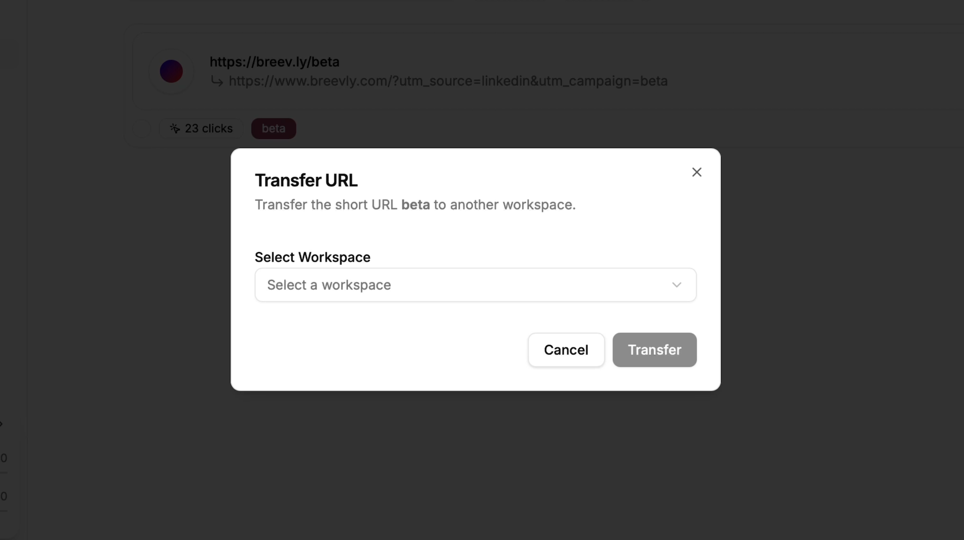 - When transferring a link to another workspace, all analytics data will be reset. This action is irreversible.